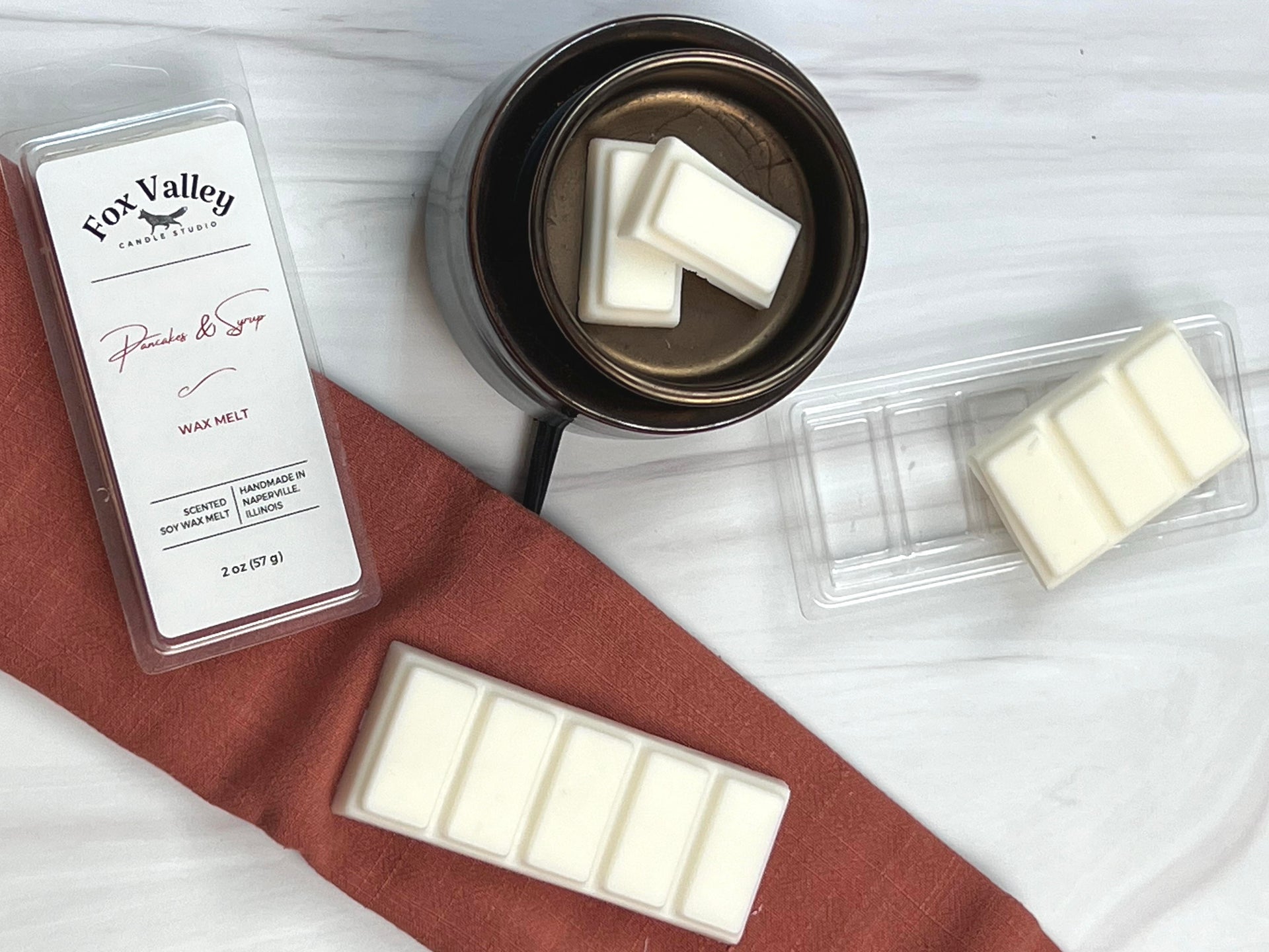 Our Pancakes & Syrup wax melt smells like a Saturday morning breakfast with a big plate of pancakes topped by fresh, pure (and real) maple syrup.