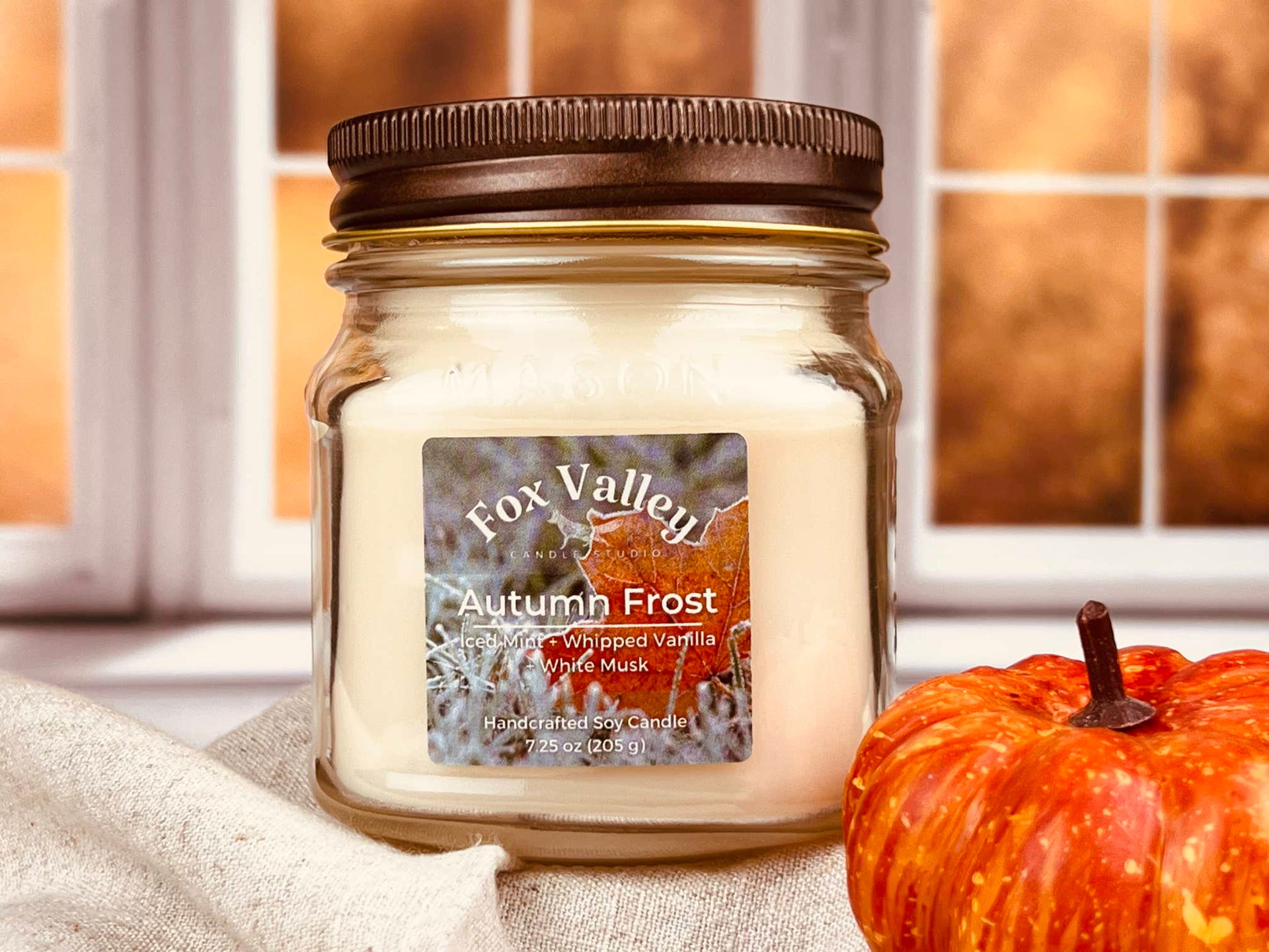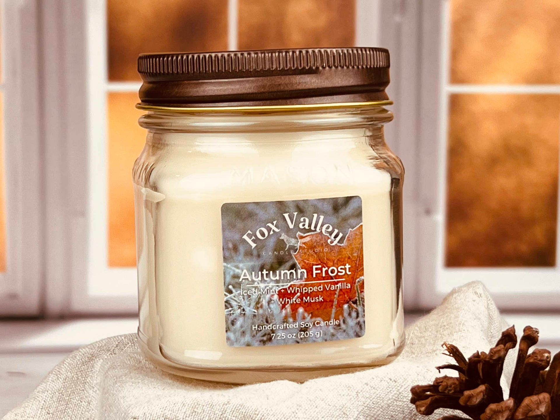 Nestled within a charming glass mason jar, our Autumn Frost candle will add a touch of rustic, country-styled elegance. It will light up your space even as the days get shorter. The warm glow flickering through the jar invites memories of cool autumn nights spent by a fire.