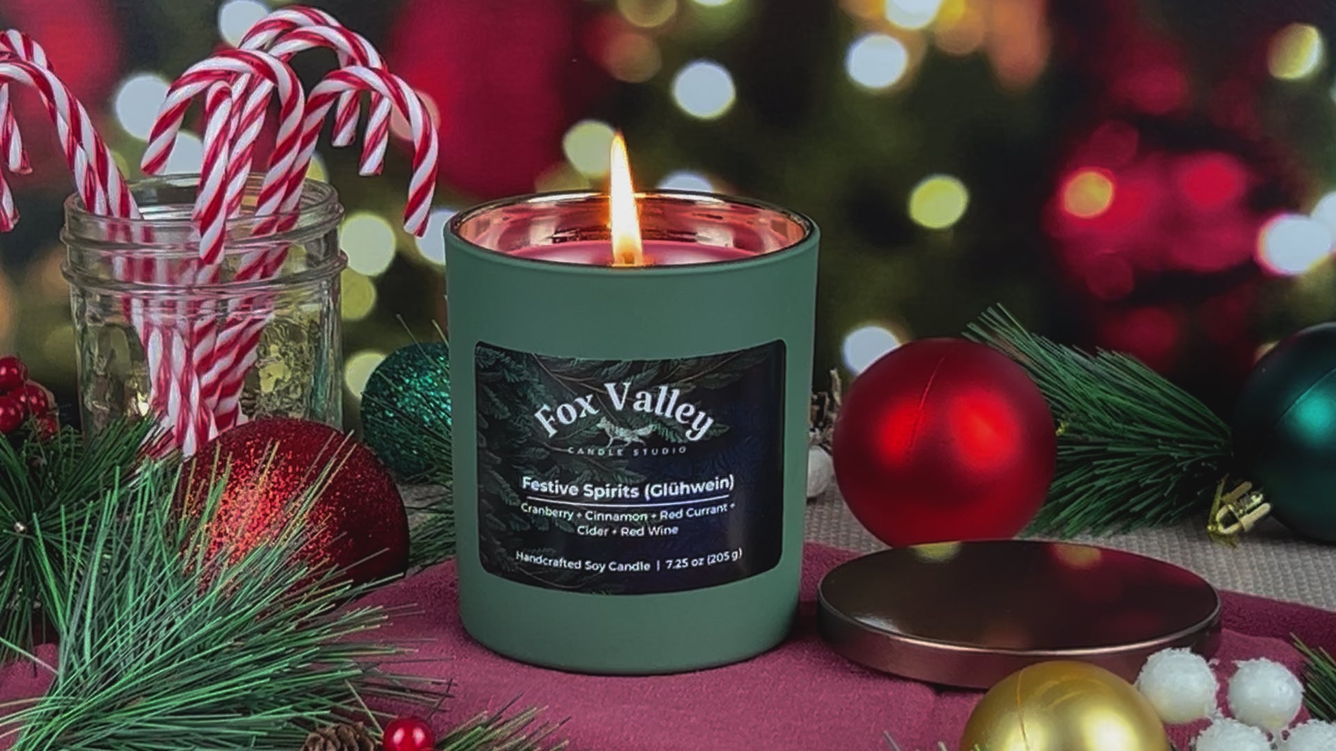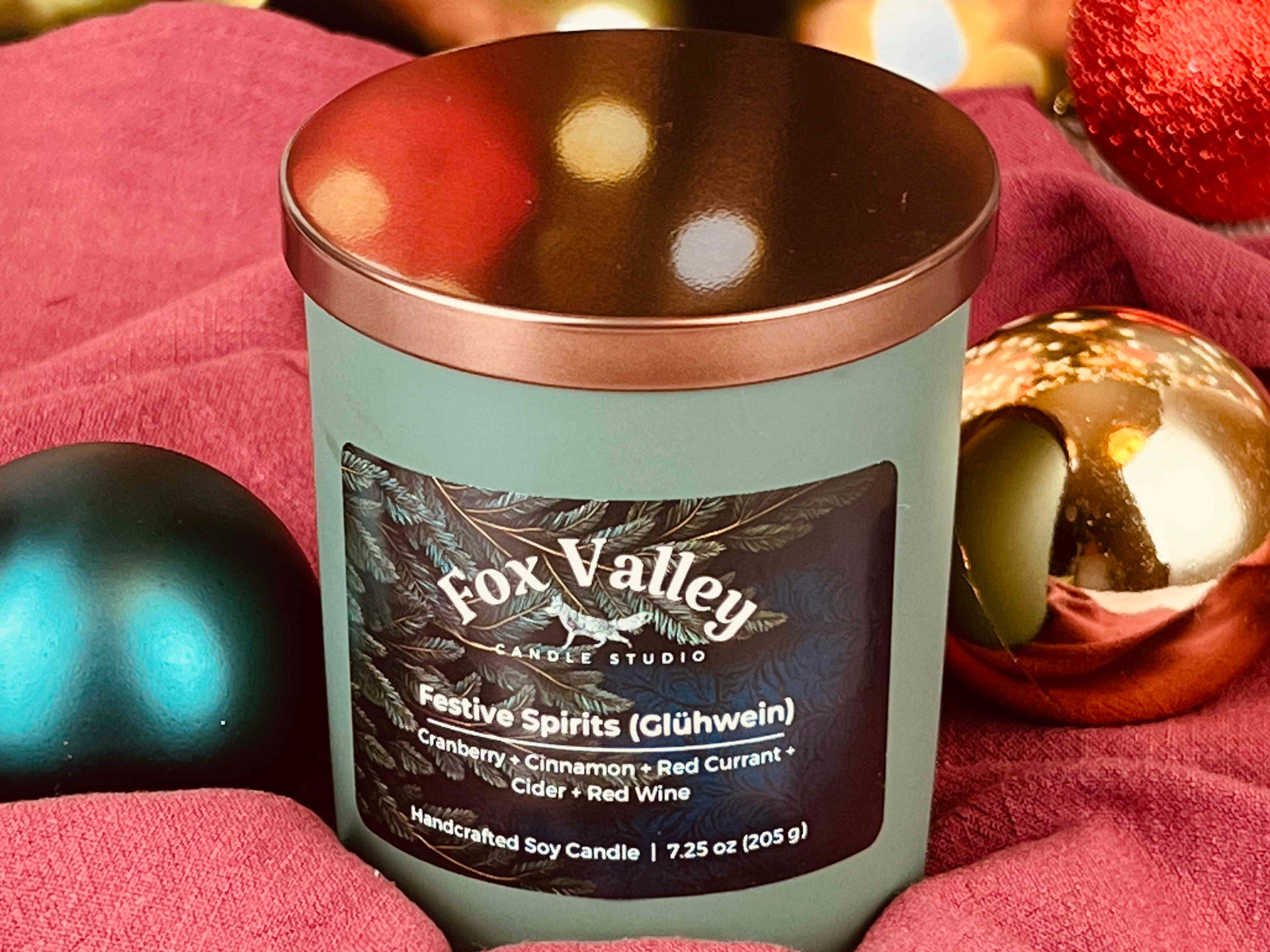 Introducing Festive Spirits – the enchanting creation from Fox Valley Candle Studio that reminds of joyous celebrations and holiday merrymaking. As the name suggests, this soy candle is more than a mere festive accessory; it's an aromatic journey that evokes the warmth of shared moments and the spirited cheer of holiday indulgence.
