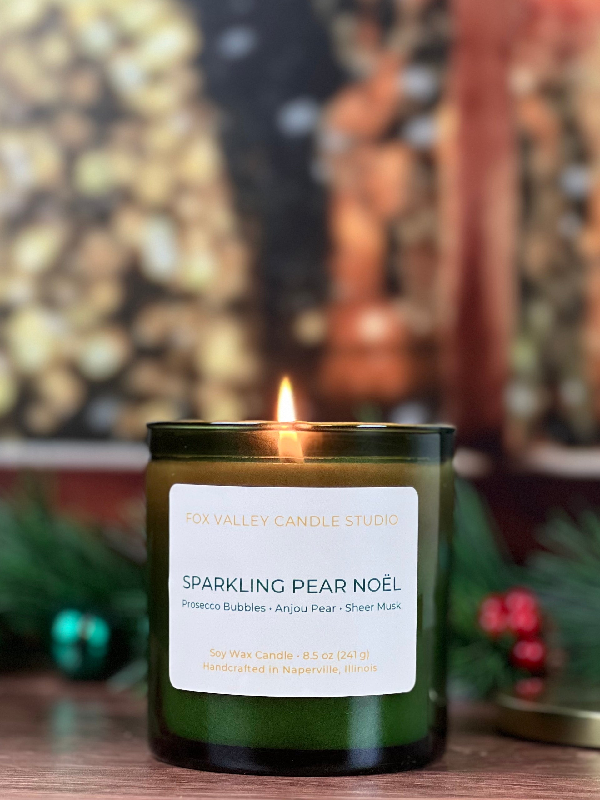 Effervescent and full of cheer, Sparkling Pear Noël captures the joyful sparkle of the holiday season. Notes of crisp Anjou pear and bubbling Prosecco mingle beautifully, while a soft touch of sheer musk adds warmth and sophistication. The result is a fragrance that feels both festive and refined—like a toast shared by the fire as snow drifts outside.