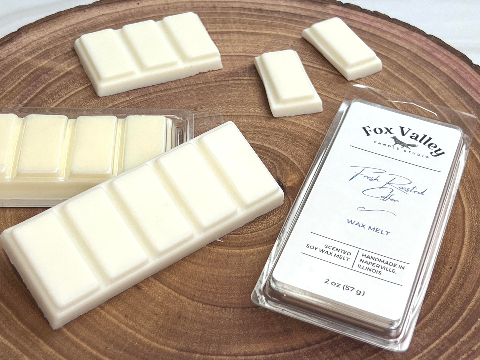 Our wax melts are handmade from all-natural, USA-grown soy wax mixed with high quality, phthalate-free fragrance oils. Wax melts are sold as hand-poured 2 oz bars which are easily broken into 5 individual melts for long-lasting use.